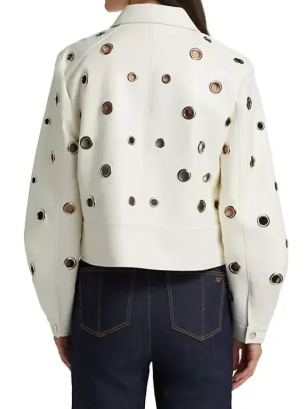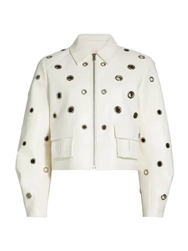 Draw from the fierce, confident energy of 9-1-1 Season 8 Grommets Leather Jacket, inspired by the bold and stylish on-screen wardrobe of the namesake character. Athena Grant White Leather Jacket Designed to make a statement, this jacket captures the perfect mix of elegance, edge, and empowerment. Athena Grant White Leather Jacket Stitched from high-quality faux or real leather (whichever one prefers), this jacket is durable, feels luxurious, and looks sleek. It is lined with a thin, smooth interior for increased comfort and can, without any discomfort, be worn throughout the day. The grommet detailing throughout the jacket is the highlight of this piece: polished metal accents add modern flair to this striking character.