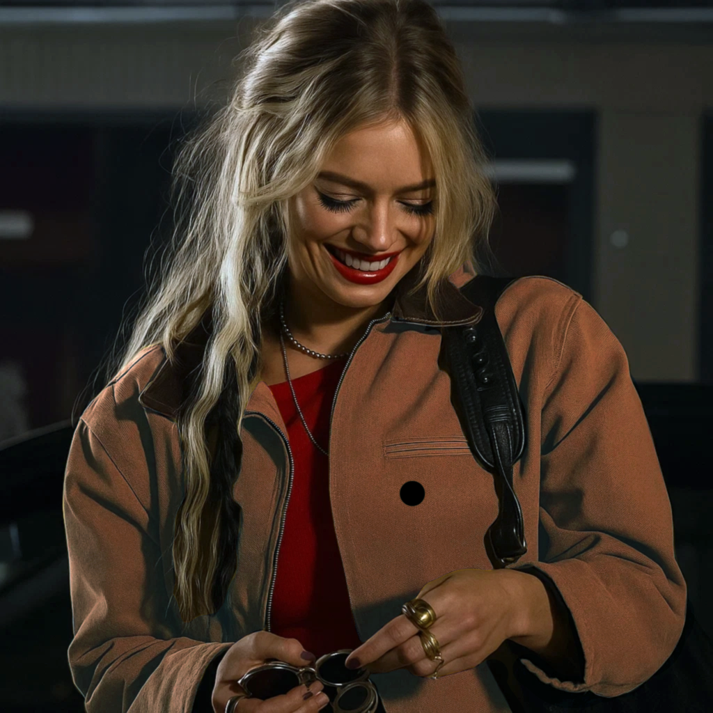 Useful side pockets add practicality to the design, perfect for stowing essentials or keeping your hands warm on cold days. The Eenie Meanie Edie Jacket combines comfort, durability, and style in one versatile wardrobe piece. Pair it with jeans, leggings, or weekend trousers for a fashion-forward look. Fans and fashion enthusiasts alike will appreciate how it brings cinematic style into everyday attire.