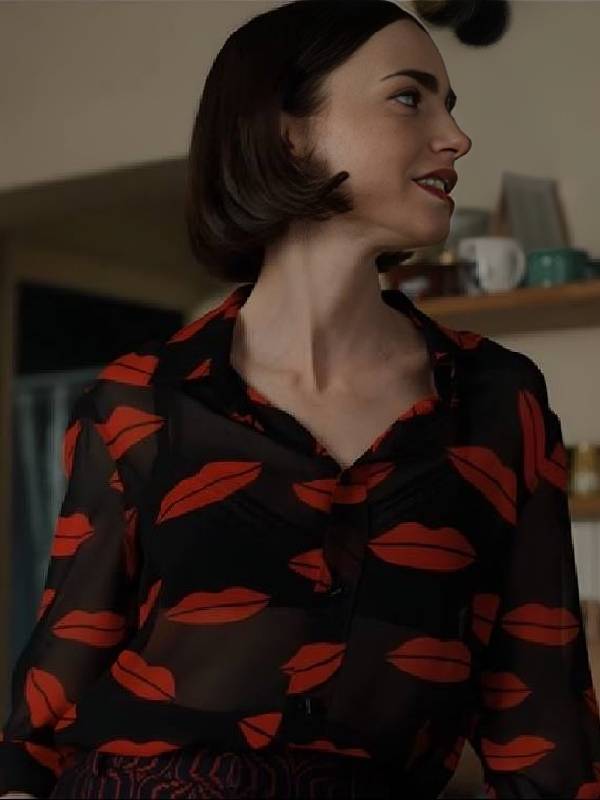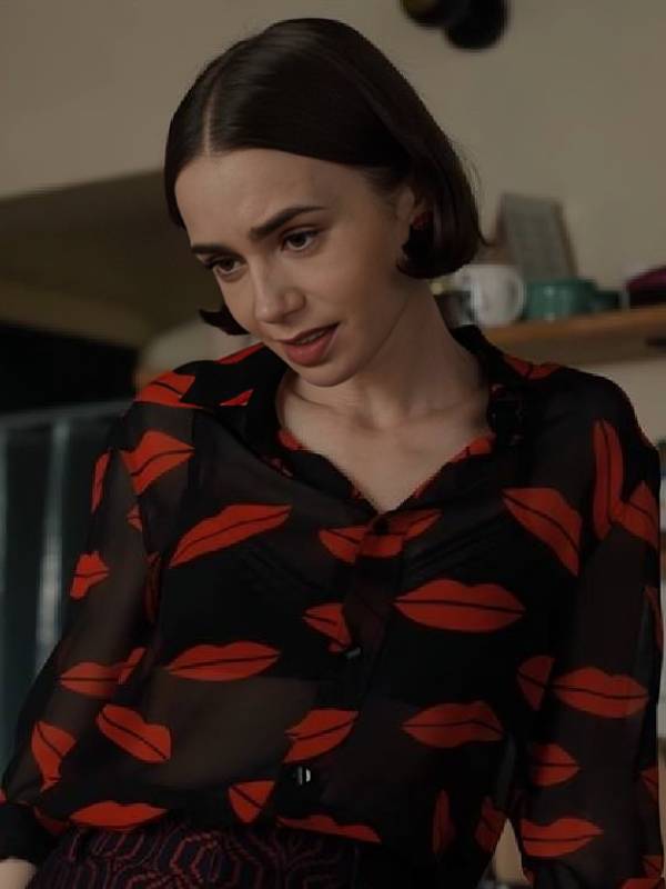 Emily in Paris S05 Lily Collins Lips Printed Blouse