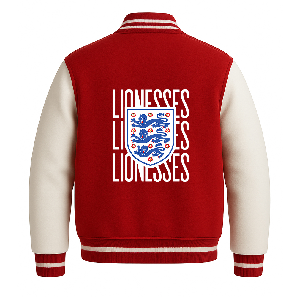 England Varsity Jacket coordinates with jeans, joggers, or everyday trousers perfectly, and thus it is useful on match days, casual days out, or any regular day. The heavy-duty stitching and good workmanship ensure prolonged durability while making you stay fashionable from year to year. Whether you are cheering at the stadium or heading out with pals, this jacket is warm, cozy, and stylish. Show your support for the England Lionesses with this essential varsity jacket.