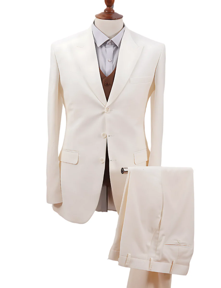 Leonardo Wedding Suit Indulge in the luxurious Gatsby lifestyle by utilizing this suit inspired by him. The pristine white coat, set to grab attention wherever you go, features a sharp notch lapel and a stylish button closure. Crafted from exceptionally high quality suiting fabric, it is tailored to perfection. With the addition of the rich brown V-neck vest, the outfit is further elevated, adding an bold contrast to the suit. To further polish the outfit, fitted slim fit trousers provide a perfect silhouette. Look no further when trying to make a statement at weddings, galas, or anything in the like. Daniel Classic Suit is bound to make you the talk of the event for years to come. Be the epitome of distinction and elegance by making this suit your signature style.
