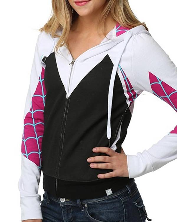 This clothing is designed particularly for the women in general, the girls in general. It includes the common color scheme of Spider-Gwen’s buyer as the main theme while also featuring the hooded collar with the adjustable threads so that the hood can be adjusted more comfortably. Second, Spider Gwen Pullover Hoodie includes the zipper front closure along with the incorporation of the rib knitted cuffs. The overall aesthetic also has the webbing design, just as on the character’s outfit.