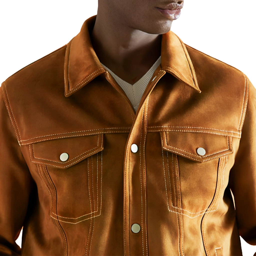 Love Island UK Suede Jacket, a sharp and versatile jacket influenced by the heartthrob’s stylishly laid-back on-screen appearances. Blending sophisticated tailoring with easygoing charm, brown suede leather jacket perfectly balances high-end luxury and casual charm suitable for everyday wear and night outs. Crafted from high-quality suede, the jacket has a soft, plush texture that looks almost as good as it feels. The silky viscose lining on the inside provides all-day comfort and is effortlessly able to be layered over shirts, t-shirts, or knitwear. Lightweight but strong in build, it is ideal for transitional periods, providing just enough warmth without being bulky. The style includes a timeless shirt-style collar, modern zip-up front opening, and nicely sewn detailing that emphasizes its premium construction. Functional side pockets add style and functionality, enabling you to carry small items without compromising your look’s sophistication and sleekness.