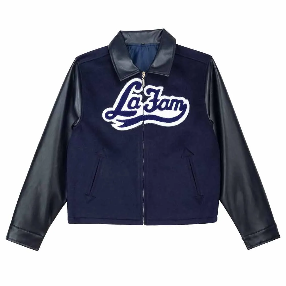 The jacket has snap-button front closure, rib-knit striped collar, cuffs, and hem, and tailored varsity-cut design that gives a structured but easy silhouette. The bright red body with striking accents tells it all—ideal for the one who is not shy to stand out. Emblazoned with La Fam logos, patches, or embroidery (version dependent), this jacket is a symbol of loyalty, pride, and individual identity. The two angled front pockets make it convenient, and an inner pocket provides safe storage space for your necessities.
