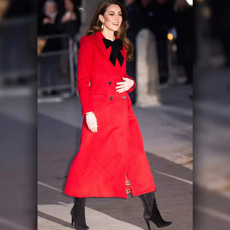 Kate Middleton Christmas Wool Coat which depicts the timelessness of the Christmas spirit and the Princess of Wales herself during the winter season. Kate Middleton Red Coat, which is sophisticated, delivers grace as a package and is perfect for posting events, holiday events, or even fadding style. Kate Middleton Wool Coat, made out of wool blend fabric, provides warmth while being comfortable at the same time. The flattering dose of polish the Christmas Carol Service Kate Middleton Coat gives is aided by tailored fit, structured shoulders, and long-line silhouette.
