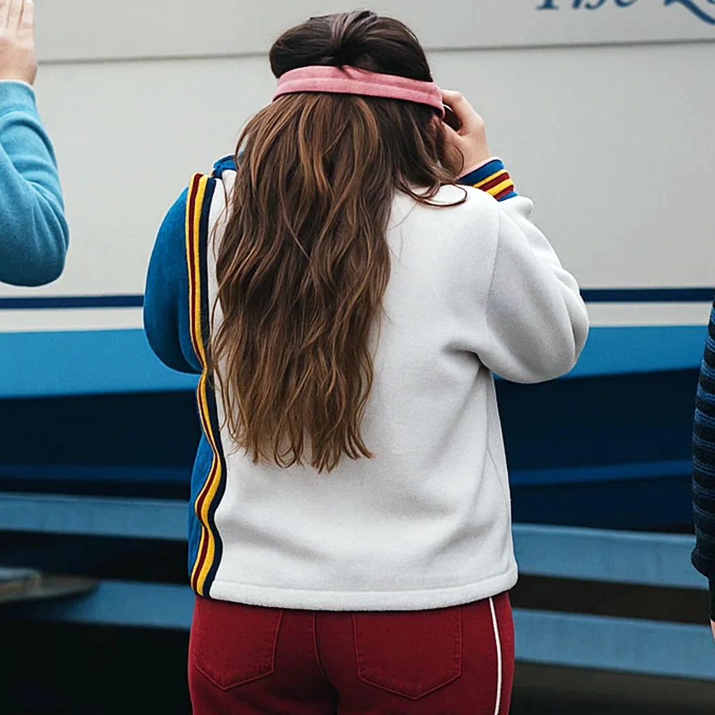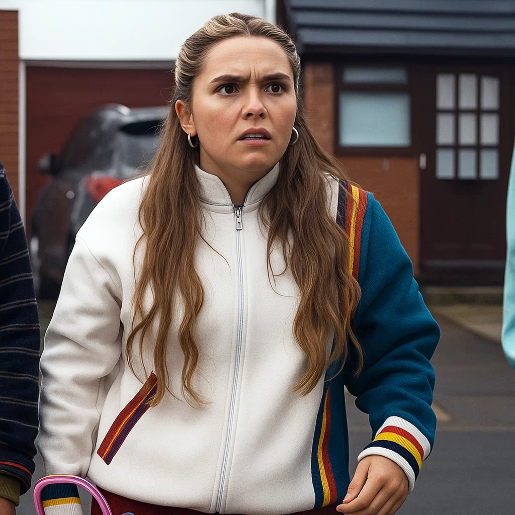 Lizzie Davidson Zip Jacket Elasticated cuffs on long sleeves keep you securely covered, even on windy days, and contribute to the jacket’s casual style. Side pockets with functional details create useful storage space for small items, merging convenience into the overall design. The Lizzie Davidson Such Brave Girls S2 Zip Jacket embodies the cool, stylish look exhibited on TV, placing it perfectly as a wardrobe must-have for both lovers of the show and those seeking a go-to casual jacket. Whether styled as a fashion statement or as a layering staple, it serves up the ideal combination of style, comfort, and carefree cool—just as Lizzie Davidson herself.”. This jacket is fan gear, sure, but it’s also a wardrobe workhorse for anyone who digs relaxed fashion with a little bit of personality.