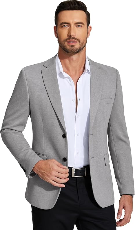 Men’s Grey Blazer | Two-Button Jacket with Front Pockets