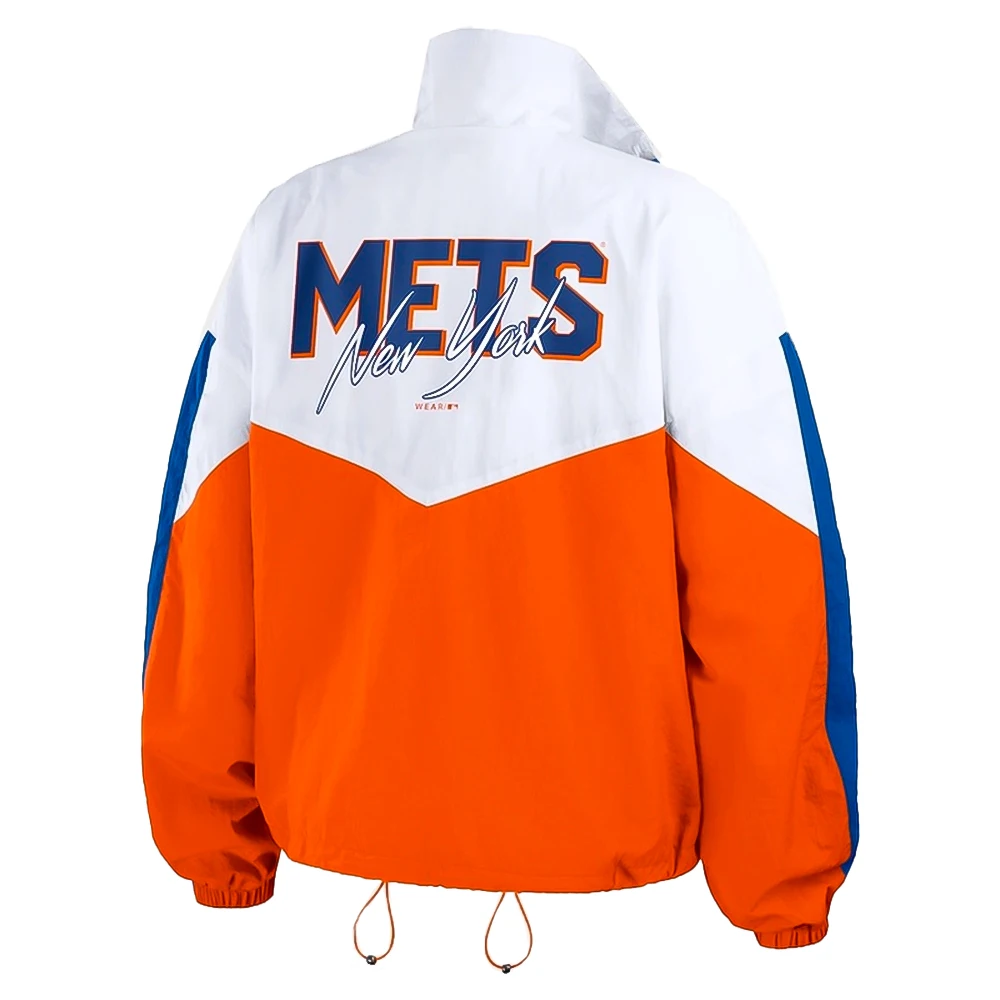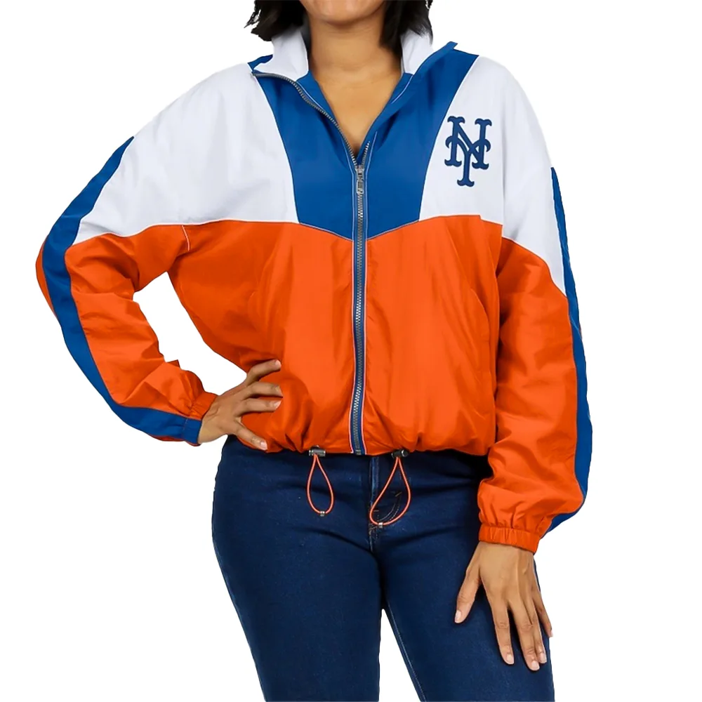 Reveal your team pride in bold fashion with the NY Mets colorblock jacket  a must-have for every die-hard Mets fan. Whether cheering in the stands at Citi Field or wearing your team on the move, this statement jacket combines performance, comfort, and Mets pride like never before. Designed with a dynamic color block pattern in official team colors, this windbreaker is all about standing out. The lightweight, water-resistant fabric makes it perfect for unpredictable weather — rain or shine, you’ll stay dry and comfortable. The breathable mesh lining enhances ventilation, making it ideal for layering on game day or during an active lifestyle.