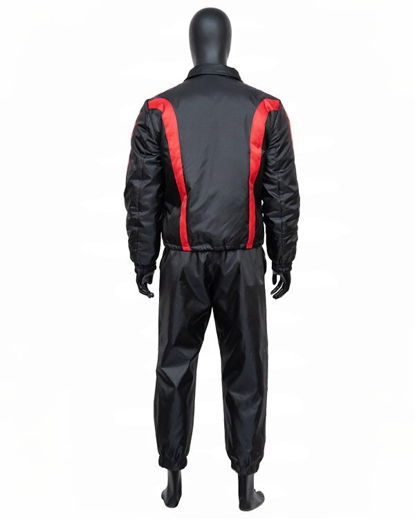 Add fast-paced intensity and streamlined sophistication to your wardrobe with Ryan Gosling Black Tracksuit. Drawn from Ryan Gosling’s cool-tipped style in the high-octane, this tracksuit incorporates tactical style with sporty sophistication—ideal for those with a sense of fashion and a fearless heart. Made from a high-quality polyester or poly-cotton blend, this track suit provides light comfort, breathability, and flexibility—perfect for gym sessions, travel, or off-duty hours. The material responds with you, offering durability while ensuring that you remain comfortable when you’re on the move or taking it easy. The jacket has a zip front closure with high collar, ribbed cuff, and hemline for ease of fit. It also has two side pockets adding functionality and urban cool appeal.