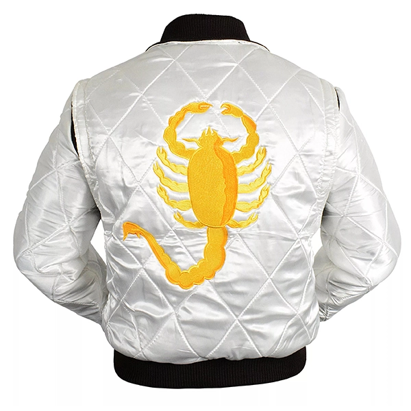 Tap into the inimitable cool of Scorpion Ryan Gosling Drive Jacket, inspired by his cult classic look in the film Drive. The jacket has turned itself into an icon, all about understated style, rebellion, and movie cool. Made of superior satin, the jacket’s silky, light-catching finish catches the light just so to cause eyes to glance. The quilted diamond stitch provides texture and dimension, while the ribbed waistband, cuff, and collar define a close, sporty fit. The zipper-up closure at the front features sleek black trim standing out stunningly against the shiny ivory body.