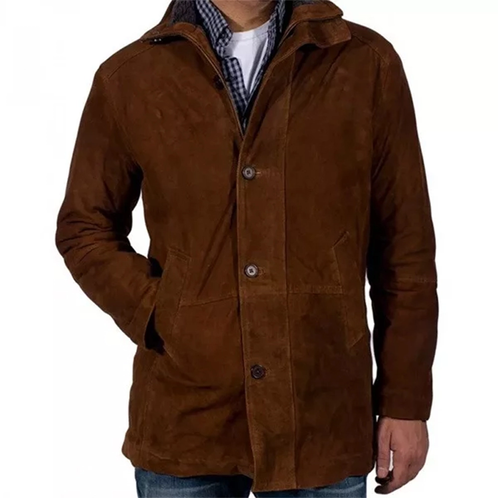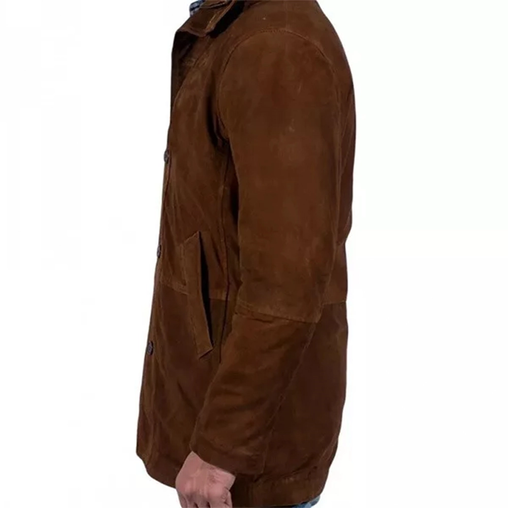 Sheriff Walt Longmire Coat, based on the rugged and fearless lawman of the hit show Longmire. This timeless outerwear icon embodies Walt Longmire’s tough-as-nails nature and straight-up demeanor. It’s ideal for anyone who’s a fan of the series or anyone who wants to introduce a little frontier brusqueness into their wardrobe. Crafted from high-quality suede or well-worn leather, the coat boasts a weathered look that reflects the unforgiving Wyoming landscape. The material is thick and robust—designed to withstand wind and chill. It’s made to develop an honest Western patina with age.