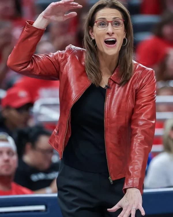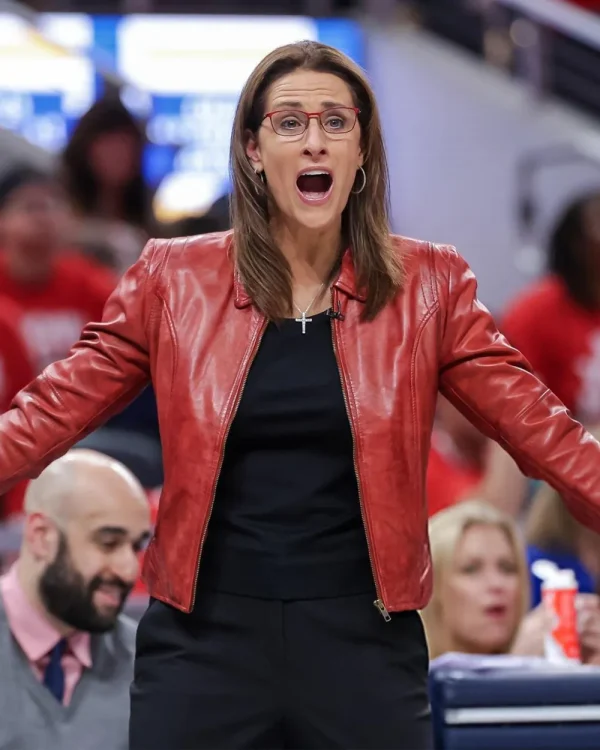 Stephanie White Red Leather Jacket a dramatic piece based on the legendary courtside style of the renowned coach throughout the Playoffs. Crafted to balance edge, sophistication, and power, this red leather jacket is the ultimate statement piece for women who adore commanding style. Stephanie White Red Leather Jacket Made from top quality genuine leather or faux leather, it provides strength with a smooth, glossy finish that deepens its bright red color. Soft viscose lining provides comfort for extended wear, and it is thus practical as well as stylish. With front zipper closure, the jacket provides a contemporary, structured fashion, and the lapel-style collar adds a touch of ageless attitude. The look is then completed with long sleeves and zip-up cuffs, which enable you to customize the fit as well as introduce a stylish element to the overall cut.