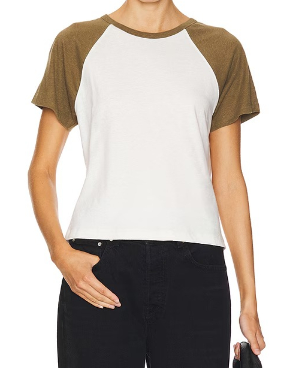 Keep it cool and casual with The Four Seasons Tina Fey Raglan T-Shirt. Drawn from Tina Fey‘s easy yet confident style, this t-shirt is ideal for everyday use. The olive green color is soft and easy to match with anything in your closet, while the raglan sleeves provide a sporty, contemporary look.