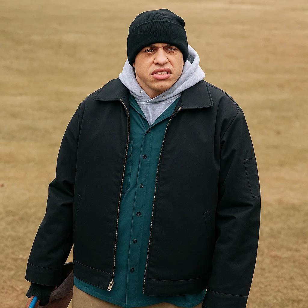 The Home Black Jacket, producing a combination that is both comfortable and wearable. Its collar and front zip closure provide this outerwear a formal, clean cut. Long sleeves finish the look with an energetic yet elegant attitude. Its pale blue color beautifully encapsulates the mood of the film, resulting in a quiet yet powerful fashion item. For Gen Z, The Home 2025 Pete Davidson Cotton Jacket provides unarguable style. It added a fashion touch to the film while remaining faithful to its tone.