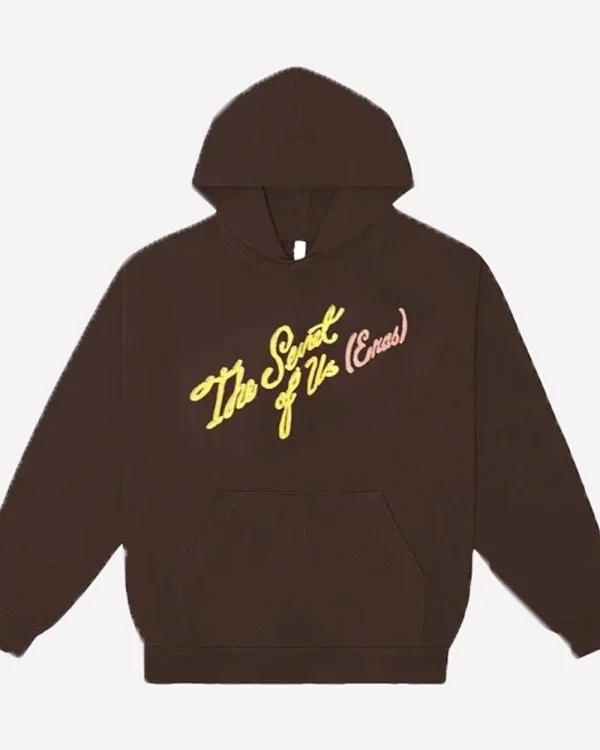 The Secret Of Us Eras Brown Hoodie Made from a fleece material, the hoodie is both warm and long-lasting. Eras Brown Hoodie is rich brown color acts as a sturdy background for the minimalist yet potent “The Secret of Us” writing printed large on the front. The aesthetic is also elevated by a roomy front pouch pocket and drawstring hood, offering functionality blended with style. Given its limited distribution, Eras Brown Hoodie has become a highly sought-after item from fans and collectors.