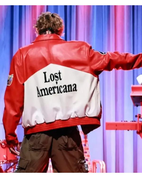 Make a statement with the bold and charged The Tonight Show MGK Lost Americana Red Jacket, a bold fashion statement drawn from Machine Gun Kelly’s tour-de-force appearance on The Tonight Show. This jacket embodies the rebellious spirit and rockstar swagger of MGK’s performance style, and it’s ideal for anyone who loves fearless fashion and unapologetic individuality. Expertly made of high-quality faux leather, the red finish of the jacket stands out and provides a smooth, durable touch. The fabric is light and strong and provides comfort for long hours without compromising fashion.