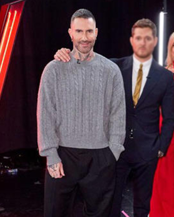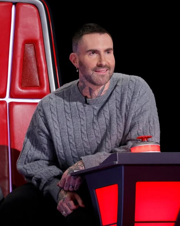 The Voice S27 Adam Levine Grey Sweater Spotted on Adam Levine when he guest-starred on the popular music competition series, this sweater absolutely embodies his rocker-chic look— understated, chic, and always perfect. Made from a knit fabric, this grey sweater provides ventilated warmth and all-day comfort. Its gentle interior and clean outer texture make it perfect for transitional weather, casual layering, or photo-ready style.