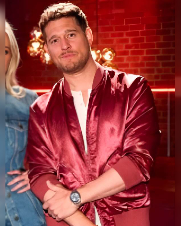 The Voice S28 Jacket Elevate your look with the bold panache and classic charm of Michael Buble Red Satin Bomber Jacket. Michael Bublé exudes sophistication and flair on stage, and this jacket embodies his daring blend of style and swagger. The jacket is crafted from satin and features a smooth, glossy finish and long-lasting construction. The soft viscose lining ensures it is comfortable for performing on stage, casual street wear, or black-tie affairs. With great design and attention to detail, the jacket provides a sleek, smooth appearance that reflects Bublé’s sophisticated and charismatic personality.