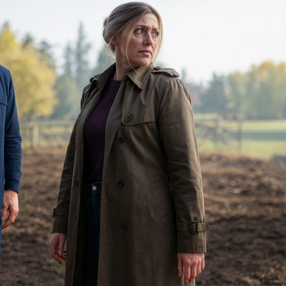The coat emphasizes an accentuated figure while allowing effortless movement. Its defined collar and clean-cut lines create a stylish look. The front closure, with buttons or a concealed zipper, keeps the coat secure. Long sleeves provide full coverage, making it perfect for fall and winter. Functional side pockets add utility, letting you carry essentials like your phone or keys while maintaining a sleek design. Quality stitching and craftsmanship reflect attention to detail, making this a timeless wardrobe piece. The Tracker S03 Jes Macallan Grey Coat complements both casual and formal outfits. Pair it with jeans and a sweater for a relaxed look, or layer it over formal attire for a chic, polished appearance. Therefore, this grey coat is a must-have fashion accessory both for fans of the series as well as fashion enthusiasts.